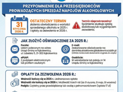 Przypomnienie dla przedsiębiorców prowadzących sprzedaż napojów alkoholowych